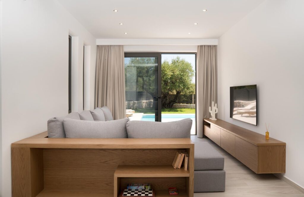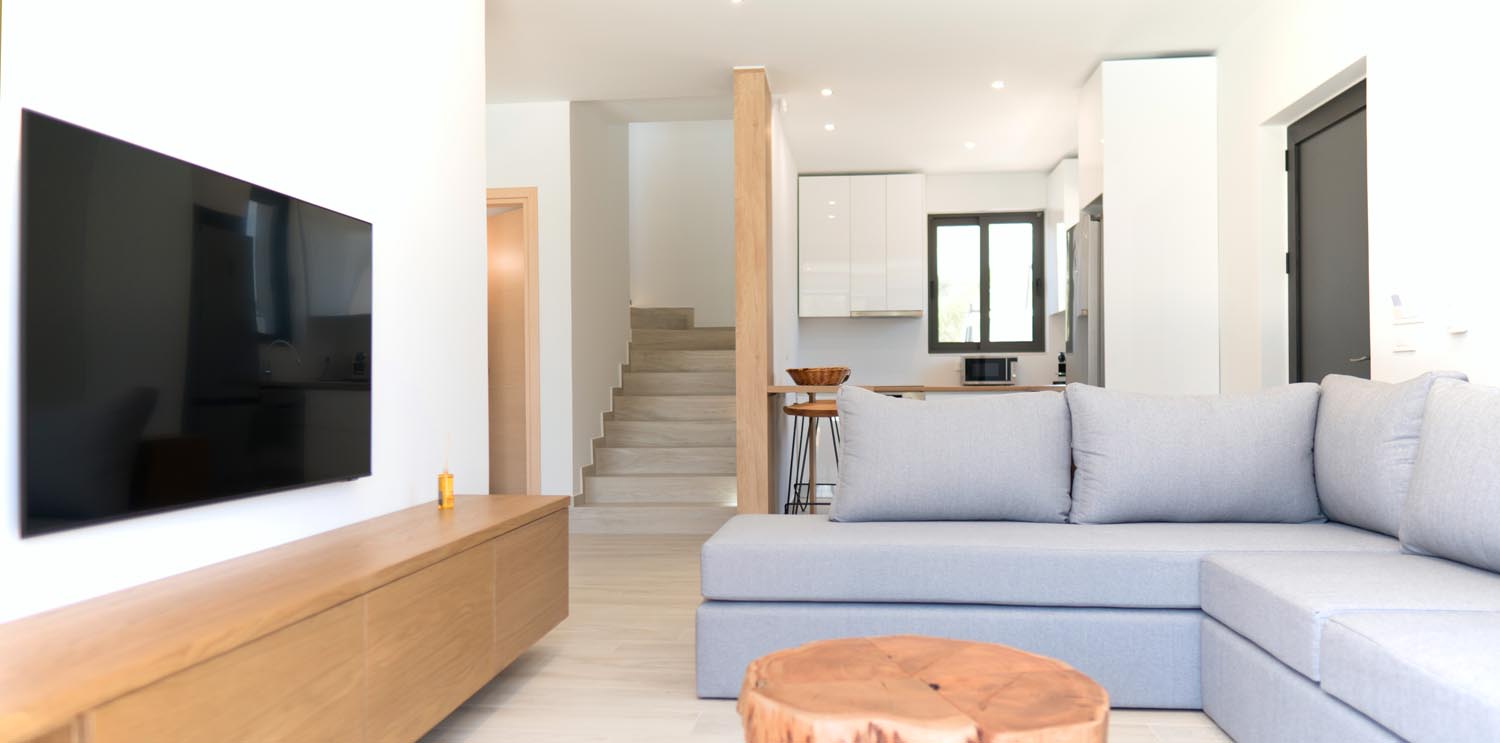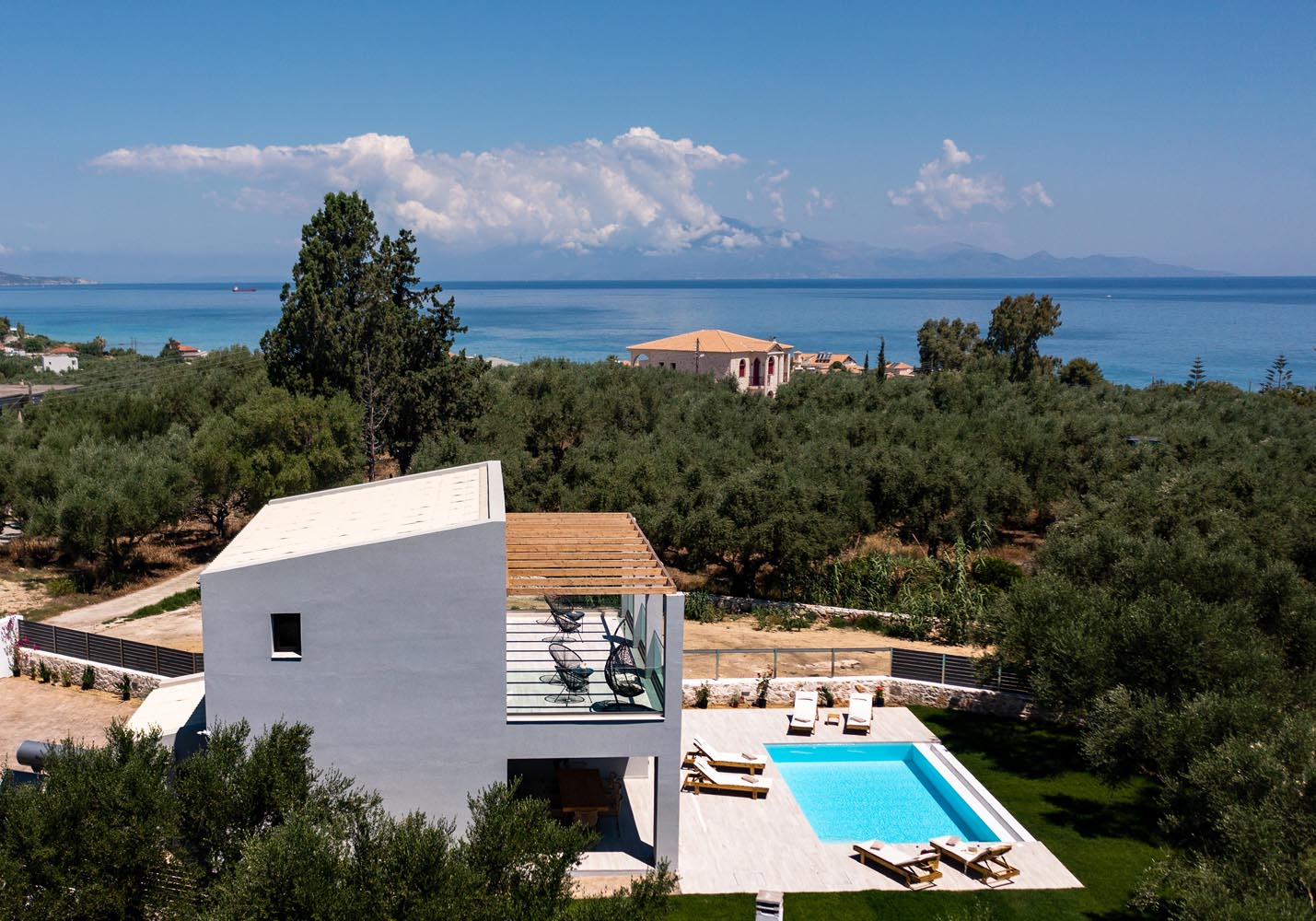 Located on the eastern coast of the island of Zakynthos, with a stunning view on the Ionian sea up to the island of Kefalonia and Peloponisos, this brand new property is just 15 km from the port and main commercial center of Zante Town, and 18 km from the airport. It offers both the quietness and beauty of nature as well as easy access to beaches, restaurants and taverns. The villa is built on a 1.000 m² plot.